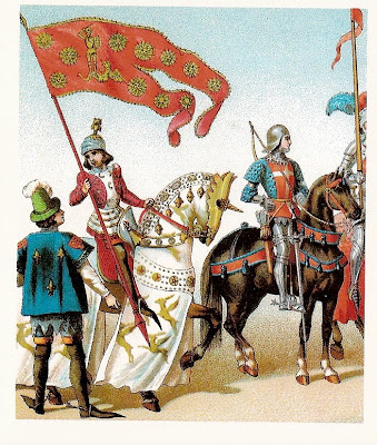 AUGUST RACINET. COSTUMES. FRANCE , MIDDLE AGES 1439-1450. MILITARY COSTUMES (DETAIL).